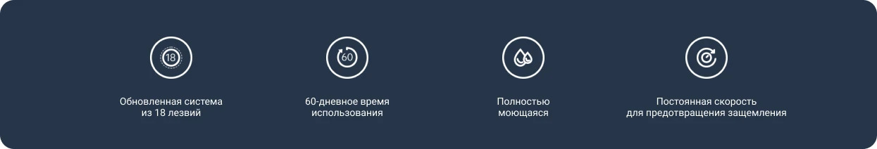 18 лезвий на каждой головке обеспечивает высокую эффективность бритья. Лезвия высокой плотности обеспечивают более чистое бритье.