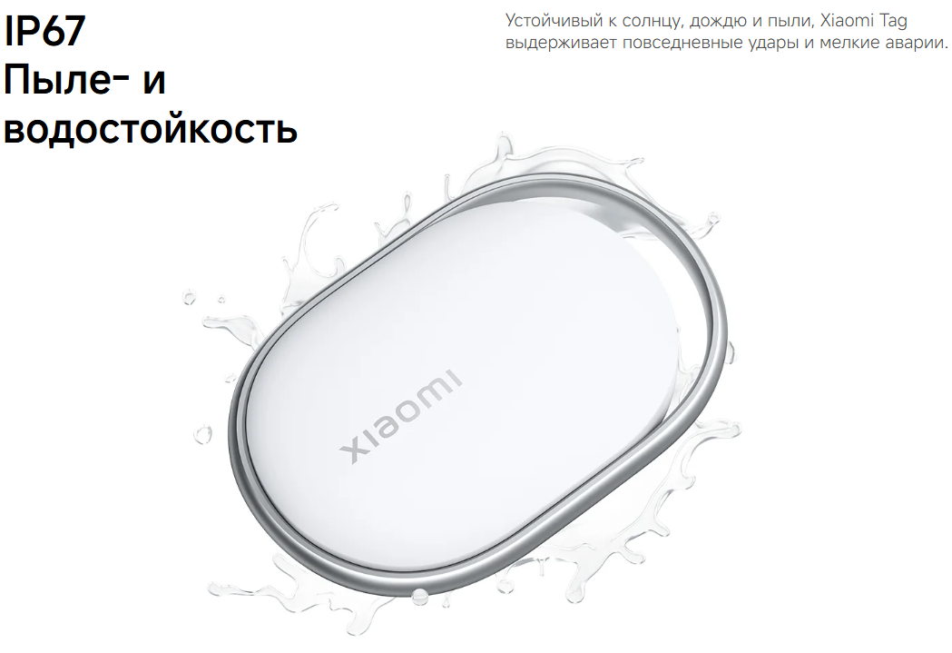 Корпус защищён по стандарту IP67 — метка устойчива к пыли и кратковременному воздействию воды, поэтому подходит для повседневного использования.